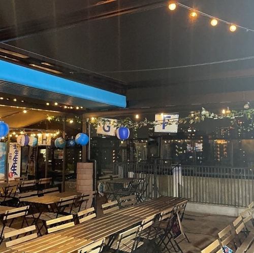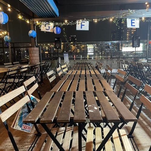 開放的な屋上ビアガーデンながら、しっかり屋根があるので雨の日でも安心して楽しめます!さらに、日よけ対策も万全で、日差しを避けながら快適に過ごせるのもポイント。天候を気にせず、ゆったりお酒を楽しめる最高の空間で、仲間と楽しいひとときをお過ごしください!